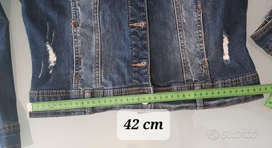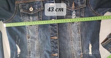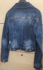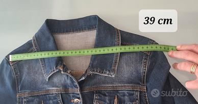 Giubbotto di jeans da donna taglia L, ma veste piccolo: consigliato per una S/M (verifica sempre le misure nelle foto). Modello corto e aderente, leggermente elasticizzato per una vestibilità più comoda e valorizzante. Denim blu con effetto slavato e dettagli leggermente rovinati (stile distressed), molto attuale e facile da abbinare con qualsiasi outfit casual o urbano. Dotato di chiusura con bottoni, tasche sul petto e cuciture a contrasto. Ideale per primavera, autunno e serate estive. Condizioni ottime , senza difett.