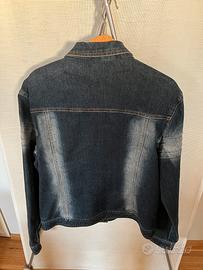 Giacca donna jeans blu scuro - Taglia L - Stile anni 2000 - Effetto slavato - Tasche con zip sul davanti - In ottime condizioni