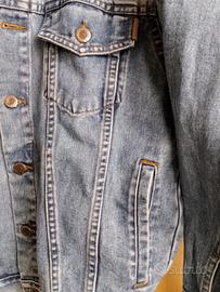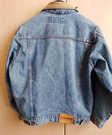 Giacca jeans donna Timberland, 100% cotone, colletto color tabacco, 6 tasche, di cui due interne molto ampie, maniche larghe, vestibilità comoda. Misure: spalle 44 cm, vita 46 cm, lunghezza 61 cm, lunghezza manica 54 cm. Poco usato in ottimo stato.
