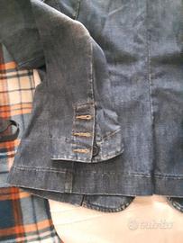 Giacca jeans Fornarina con strass rossi laterali ,con finte tasche davanti, tg L, 100% cotone, misura spalle cm 41, da ascella ad ascella cm 44, lunghezza cm 61 circa