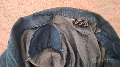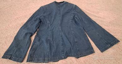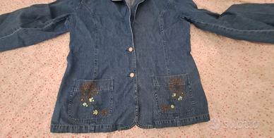 Giacca jeans vintage Lafei-Nier. Tg 46, ottimo staro, due tasche davanti decorate con paillettes, spalline foderate in denim sottili e facilmente rimuovibili, taglio svasato con effetto pinces.