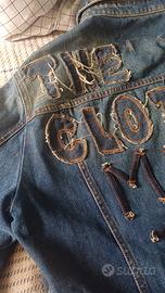 giubbotto jeans bellissimo con ricamo posteriore moschino originale indossato pochissimo con tasche e bottoni taglia I 54 vendita diretta non a distanza