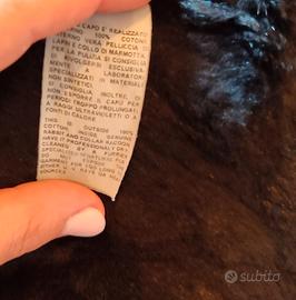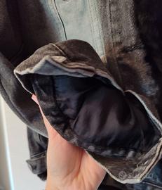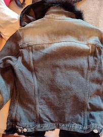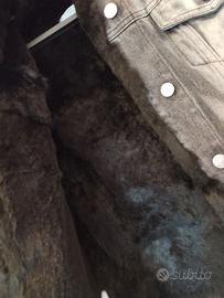 Giacca jeans nera effetto lavato con applicazione al colletto di pelliccia nera di marmotta e interno rivestito di pelliccia nera di lapin (tranne le maniche).