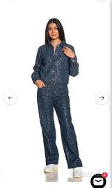 Bellissima giacca Jeans Only Levita Shimmer da donna in denim di cotone lavorato con mini rotture all over e micro paillettes ricamate, cropped fit, con colletto, abbottonatura centrale, pattine sul petto, carrè e polsino a un bottone con pince. 100% cotone Ampiezza spalle 42 cm Ampiezza sotto ascella 50 cm Lunghezza totale 49 cm Prezzo di vendita 69,99€ Ho in vendita anche i suoi pantaloni