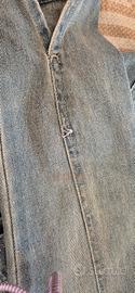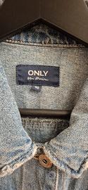 Giacca in jeans Only taglia 40 con applicazione perle bianche e rosa sul davanti. Piccoli segni sul retro maniche.