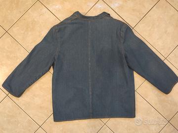 Blazer oversize in jeans stile anni80. La fodera interna è in #cotone con stampe di auto, la taglia indicata è M ma veste grande, tipico del periodo a cui risale.