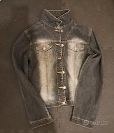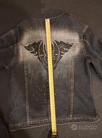 Stilosa giacca in Jeans con applicazione di Svarovsky, con stampa sul retro. Spalle cm 38, lunghezza cm 55. Ritiro a mano su Bologna