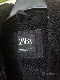 Giubbotto Zara in denim nero con interno sherpa caldo.