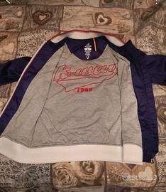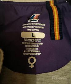 stupenda giacca come nuova Kwai. Tessuto interno in cotone tipo tuta con logo rosso ed esterno viola impermeabile. Polsini bianchi con riga rossa. molto particolare. Zero difetti!!!!!!!!