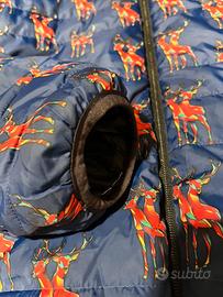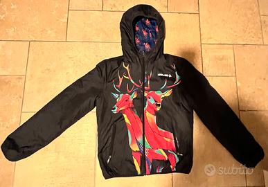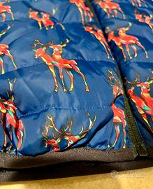 È possibile usarla da entrambi i lati (nero e blu, il tema è sempre i cervi) e sono presenti le tasche con le zip.