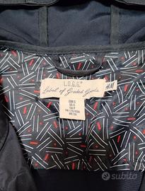Colore blu scuro. Modello leggero tipo windbreaker/impermeabile, con cappuccio e tasche frontali. Perfetta per mezza stagione e uso quotidiano. Condizioni ottime.