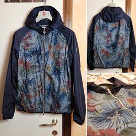 Vado a proporre giacca leggera in poliammide di colore blu anti vento con parte centrale in tessuto.