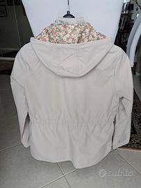 Giacca leggera da donna reversibile con cappuccio e zip reversibile panna. Pratiche tasche frontali con cerniera. Cappuccio regolabile