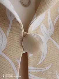 Completo primaverile-estivo composta da giacca e sottogiacca in viscosa color crema e giallo chiaro, con delicata fantasia. Particolari sartoriali come gli spacchetti nel bordo manica e nel sottogiacca , bottoni in madreperla piena. Marca BLUTIME. Veste una 46-48 ( misure: spalle 44, sottoascella 56, lunghezza 66) . Indossata solo in una cerimonia.