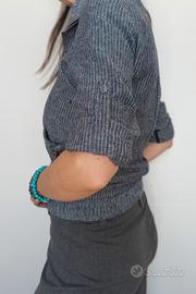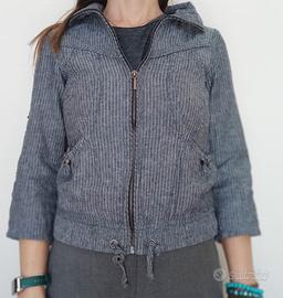 Giacca Pull & Bear color jeans rigato, leggera, cotone, taglia S(40 italiana)misure spalle ca40cm, altezza ca52cm, torace (ascella-ascella)ca42cm, bacino elasticizzato ca40 cm.
