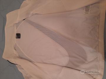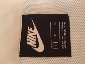 Giacca Nike. Bianca con zip nera. Tessuto molto leggero, foderata in tessuto traspirante. Due tasche. Modello over, vestibilità ampia. Taglia S. Misure vedi foto. Unisex.