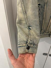 Vendo iconica giacca di jeans Levi’s Premium modello Sherpa Trucker. Lavaggio denim chiaro effetto vintage ("Stonebridge"). Interno in calda pelliccia sintetica color crema e maniche imbottite.