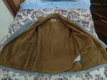 Vero vintage Levi's originale d’epoca, non una riproduzione moderna. Modello 71600 in velluto a coste color grigio-azzurro, interno in sherpa caldissimo.