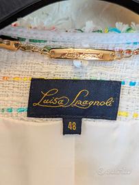 giacca donna luisa spagnoli viviana, giacca bouclè multicolor, chanel style, taglia 48 L XL, abbigliamento donna firmato, blazer elegante, giacca primavera estate, made in italy, lusso accessibile, occasione