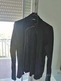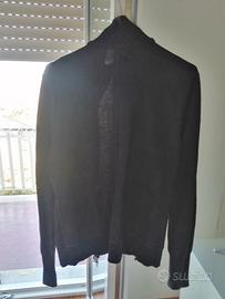 Giacca lunga aderente modello sportivo nera unisex con doppia zip, senza cappuccio 98%cotone e 2%elastan. Lunghezza 64cm e larghezza spalle 41cm .Usata poche volte. Taglia L per le spalle ma adatta a una M per seno e vita