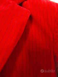 Giacca lunga da donna in velluto liscio colore rosso gessato marrone taglia 44 perfetta Conbipel art 008
