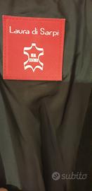 Giacca lunga firmata Paola di Sarpi in pelle nera