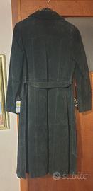 Giacca di pelle nera lunga con cintura, firmata Paola di Sarpi, capo di alta manifattura con fodera interna nera in poliestere. Capo nuovo con etichetta (compresi bottoni di ricambio) Taglia 40 italiana Misure: Lunghezza 112 cm Spalle 42 cm Manica 62 cm Condizioni eccellenti