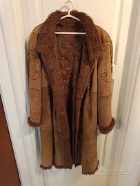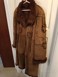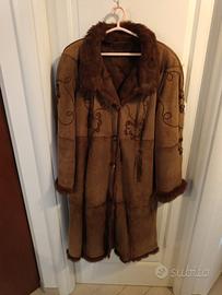 Elegante giacca lunga in vera renna con rifiniture e foderata in pelliccia