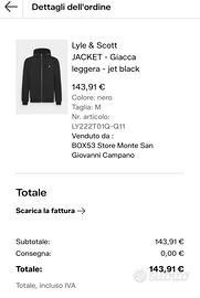 Vendesi giacca Lyle & Scott taglia M, colore Nero. In perfette condizioni, acquistata e indossata un paio di volte e mai più utilizzata, priva di difetti estetici/segni di usura. Imbottita internamente in pile per cui risulta essere molto calda e coprente. Vestibilità normale. Acquistata su Zalando per 143€, ricevuta d’acquisto visibile dalle foto . Possibilità di spedizione tramite tutto subito, altrimenti ritiro a mano a Genova. Contattare per ogni chiarimento.