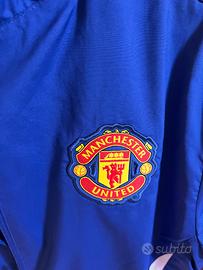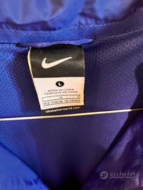 Vendo giacca ufficiale Manchester United Nike, modello training/jacket vintage anno 2010 circa. Colore blu con dettagli bianchi, logo Nike e stemma Manchester United applicati sul petto. Modello leggero con zip centrale, perfetto per sport o uso quotidiano. Taglia L bambino/ragazzo