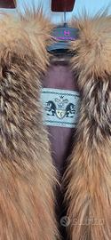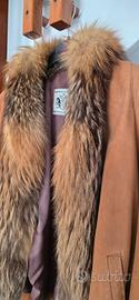 Vendesi giacca/mantella in pelle rasata di colore marrone con vero collo di volpe rossa.