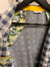• Fodera Interna: Un tocco esotico e raffinato dato dal sottocollo e dai profili interni con stampa tropicale a fogliame, che aggiunge carattere quando la giacca è indossata aperta.