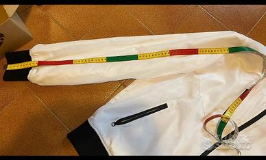 Logo sulla manica. Cappuccio estraibile con cerniera. Tasche. Misure indicate nelle foto.