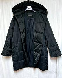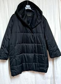 Elegante giacca imbottita Marina Rinaldi. - Design trapuntato a quadri. - Ampio collo a cappuccio. - Chiusura frontale con bottoni magnetica. - Tasche laterali con zip.