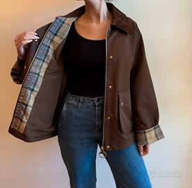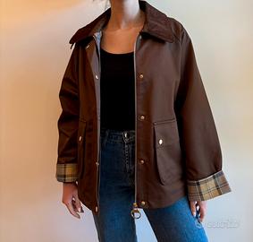 Giacca marrone dallo stile classico, ideale per la mezza stagione. L’interno è rifinito con fodera a motivo tartan, che aggiunge un tocco elegante. Il capo presenta una chiusura frontale con zip e bottoni automatici, colletto in velluto a coste e pratiche tasche frontali. Nuova con cartellino Taglia unica