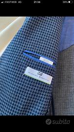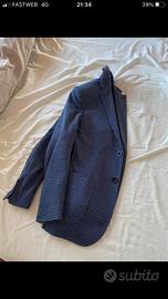 Giacca uomo Massimo Rebecchi a fantasia blu e grigia, taglia 46, due spacchi laterali dietro, due bottoni, sfoderata con tasche sportive. Morbidissima e in ottime condizioni