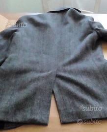 Giacca in lana grigia, con trama a spina di pesce.