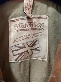 giubbotto in pelle effetto vintage colorazione m marrone articolo indossato due volte marca Matchless taglia XL