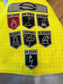 Giacca polivalente, traspirante e impermeabile, con proprietà antistatiche, ignifughe, antiacido e alta visibilità; realizzata con tessuto esterno composto da 99% poliestere e 1% fibra dissipativa; tessuto interno in 100% cotone e imbottitura 100% poliestere 120 g/m² con trattamento antifiamma, assicurata alla parte esterna tramite cerniera.