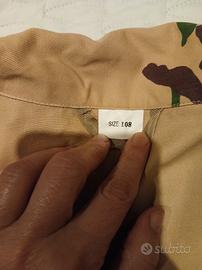 Giacca originale dell'Esercito Italiano in mimetismo desertico (modello Somalia/Iraq). Capo robusto, ideale per collezionisti di militaria, amanti del vintage o per attività all'aria aperta come il Softair. Marca: Originale Esercito Italiano. Modello: Mimetica Deserto CB2 - Taglia: 108 (corrisponde indicativamente a una XL/XXL, ideale per una corporatura robusta). Dettagli: Stellette al bavero incluse, chiusura a bottoni coperti, tasche pettorali e omerali con velcro per patch. - Stato: Usato in buone condizioni generali. Segnalo una piccola abrasione/segno di usura sulla tasca destra (come da foto 4) che non pregiudica l'utilizzo. Misure: Spalle 49 cm Petto 60 cm Lunghezza 76 cm - Accetto offerte - Spedizione rapida dopo l'acquisto - Consegna a mano disponibile