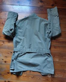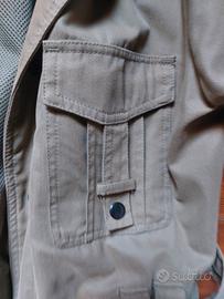 vendo giacca stile militare a marchio Sasch, molto ben fatta e curata nei dettagli, 4 tasche davanti ed una sulla manica sinistra altezza spalla. Cintura con fibbia, chiusura con zip e bottoni a pressione.