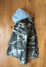 Giacca mimetica con imbottitura in pelo sintetico e cappuccio felpato, in ottime condizioni. Taglia M.