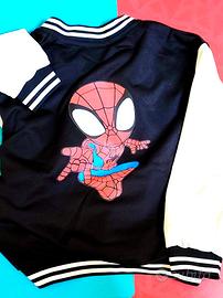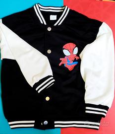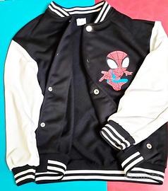 ✓Giacca colletto tipo felpa baseball bianca e nera con stampa Mini Spiderman.