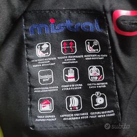 Giacca da sci Mistral, codice MSM703FW16. Si tratta di un capo tecnico caratterizzato da una vivace fantasia multicolor (giallo, azzurro, verde) su base nera, ideale sia per lo sci che per lo snowboard. Presenta un cappuccio con interno di colore verde acido a contrasto e tasche multiple con cerniere termosaldate per la protezione dalla neve.È una giacca invernale imbottita adatta per le attività in montagna. Taglia indicata L, modello maschile. Perfetta, pulita e come nuova. Si può vedere e ritirare a Bologna zona stadio, oppure posso spedire.