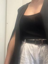 Giacca nera poco usata, modello mantello come da foto. Taglia s ma veste anche m.