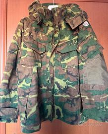 Giacca Moncler impermeabile a fantasia militare dotata di doppia chiusura (zip, bottoni), cappuccio removibile, sei tasche totali (due anteriori, due laterali, due sulle maniche). Taglia L da uomo ma utilizzabile come modello unisex. Realizzata in 100% poliammide, ha un’elevata resistenza all’usura, un’eccezionale elasticità e un’ottima durabilità.