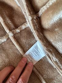 Elegante giacca stile montone colore beige con interno caldo effetto pelliccia e importante collo in vera pelliccia di volpe. Capo molto caldo e raffinato, perfetto per la stagione invernale.