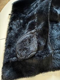 Giacca donna modello tipo montone PULL AND BEAR , originale , tg.S . Colore blu notte . Taglio asimmetrico davanti , dritto dietro . Misura torace cm.50 - lunghezza cm. 75 davanti / dietro cm.64 . Caldo , morbido e leggero . Condizioni buone , capo privo di difetti .