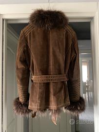 Giacca in vera pelle scamosciata marrone con cuciture a contrasto