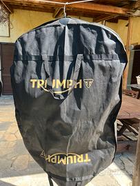 Vendo giacca moto Triumph ORIGINALE Braddan in rete con protezioni spalla e gomiti uomo M. Praticamente NUOVA, indossata 2 volte. Cedo anche appendiabito con sacca. Vendo perché la moto non fa per noi.